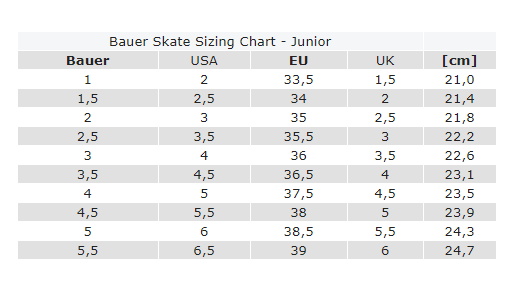 | JUNIOR - BAUER SKATE SIZING CHART | |||